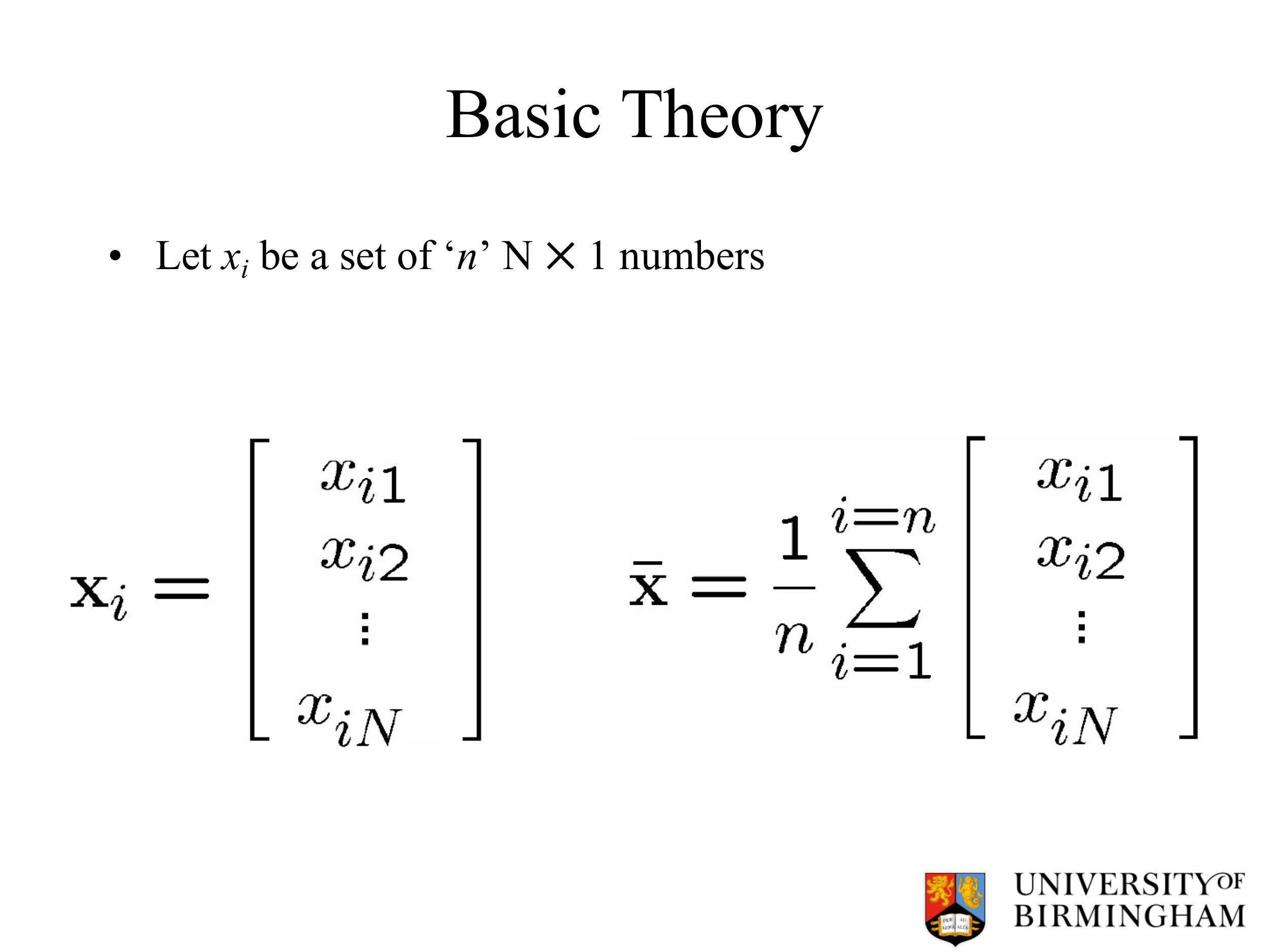 假设我们有一组数据集 $x_i$,其中每个数据点都有 n 个维度,表示为 N×1 的列向量。首先,我们需要进行以下步骤: